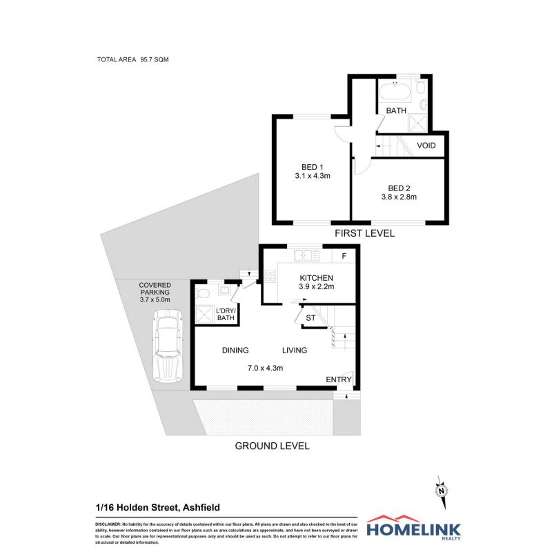 Total area: 95.7m2