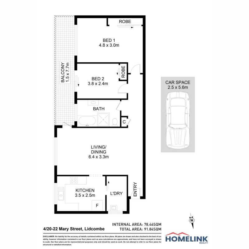 Total Area: 91.84 m2